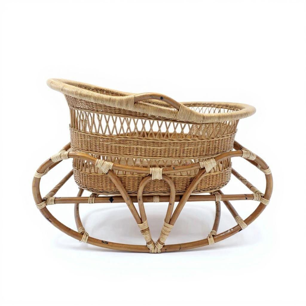 Berceau en rotin naturel d’Indonésie, élégant et aéré, offrant un cocon sécurisé pour nouveau-né grâce à sa structure légère et robuste.